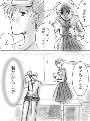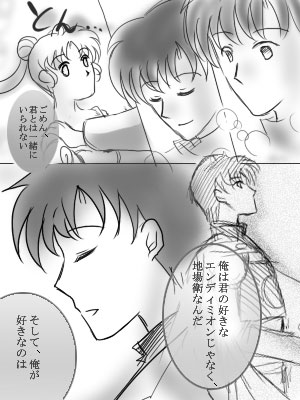 君だからこそ俺は君が好きなんだ。 誰でもない、君だから。 マンガって難しいですね。 相変わらずヘタレ絵ですみませんorz 私絵を描くのむっちゃ遅いのにこんなことしでかしてます。 時間がぁああああああ!! パパッと描ける方がうらやましいです。 ※追記※ セレニティの額の月描くのわすれたぁぁ!!! 今気づいたorzもういいや……。(ちょ)